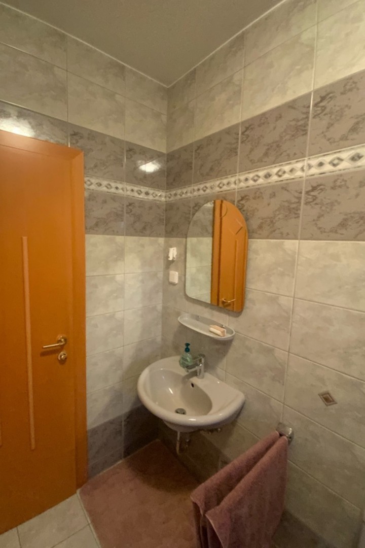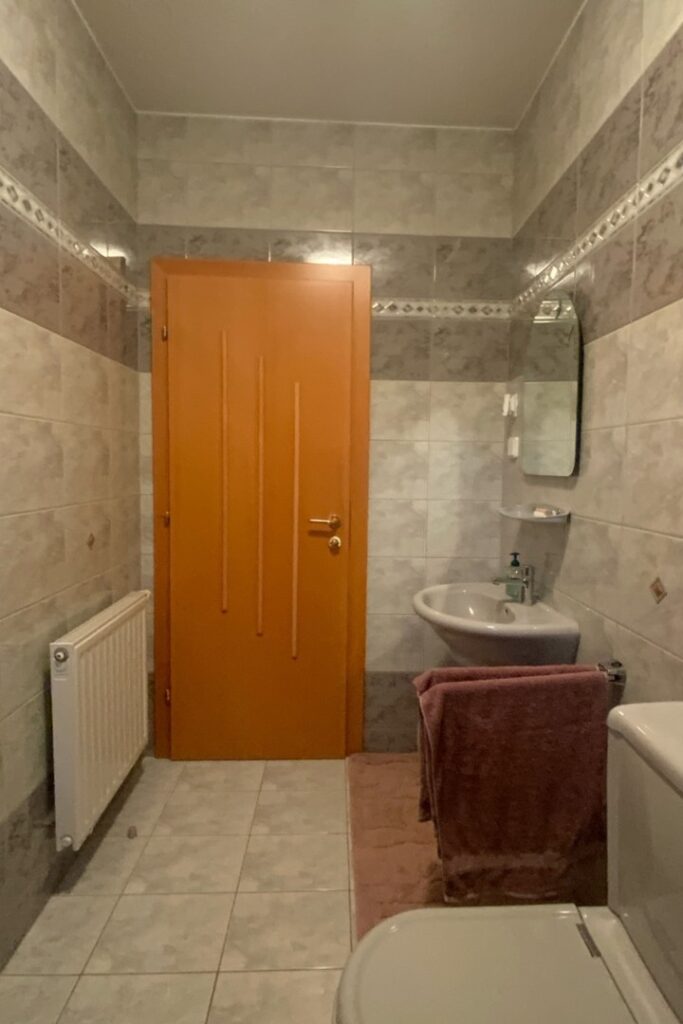 Badezimmer aus den 1990er Jahren vor der Badsanierung in Oberwart mit kleinformatigen Fliesen